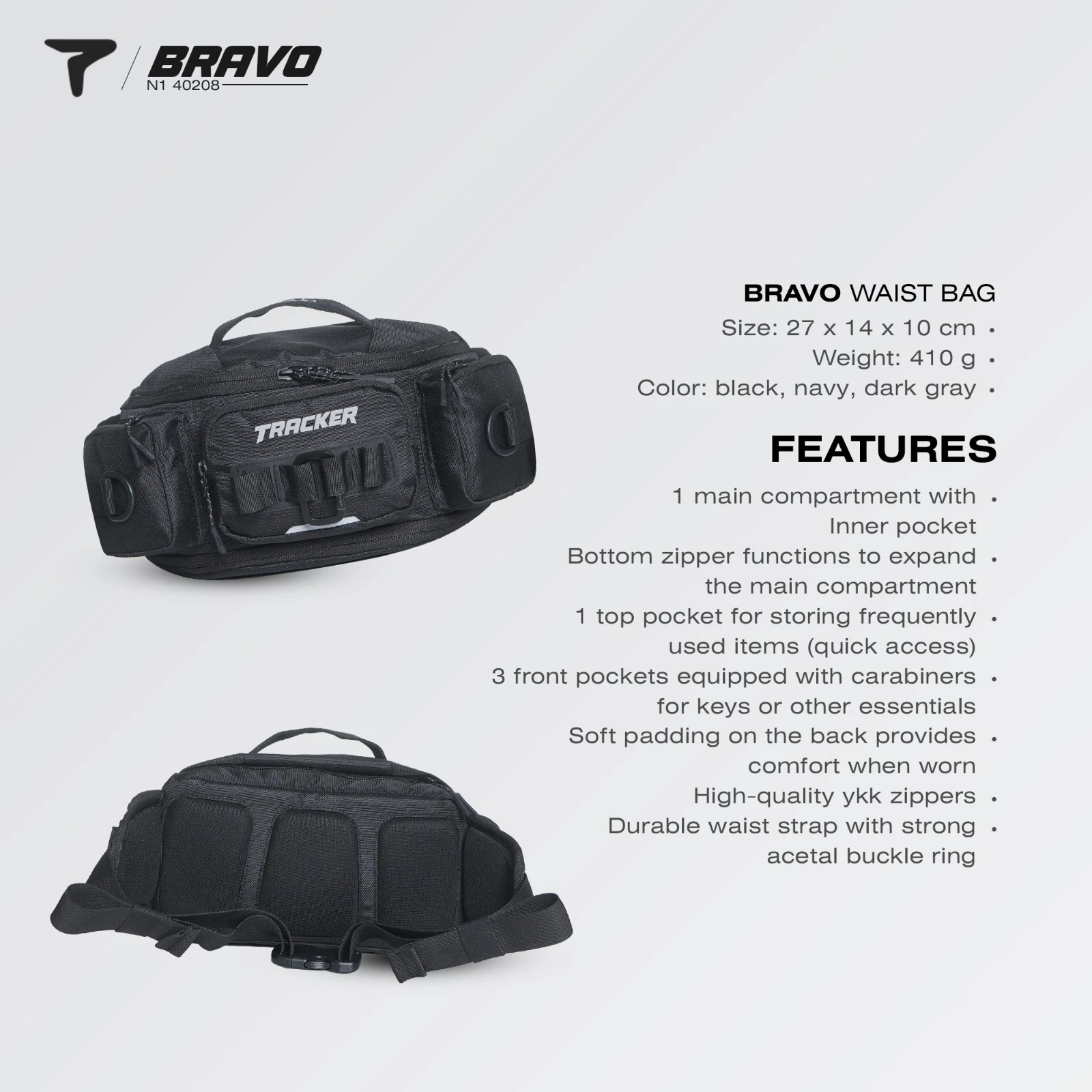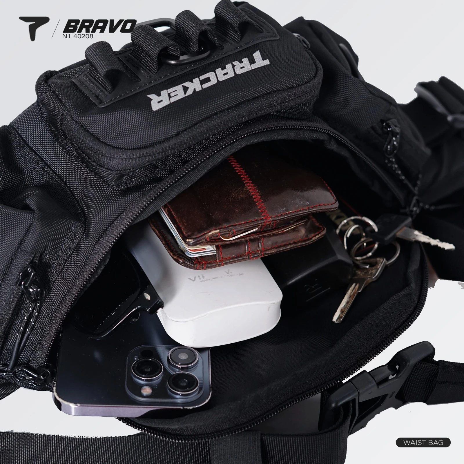Tas pinggang Bravo adalah pilihan sempurna untuk pria yang aktif dan ingin tetap tampil stylish sambil tetap praktis. Gaya Crossbody Dirancang dengan tali bahu yang dapat disesuaikan untuk kenyamanan maksimal. Cocok untuk membawa barang-barang penting seperti dompet, kunci, dan ponsel secara aman dan terorganisir.