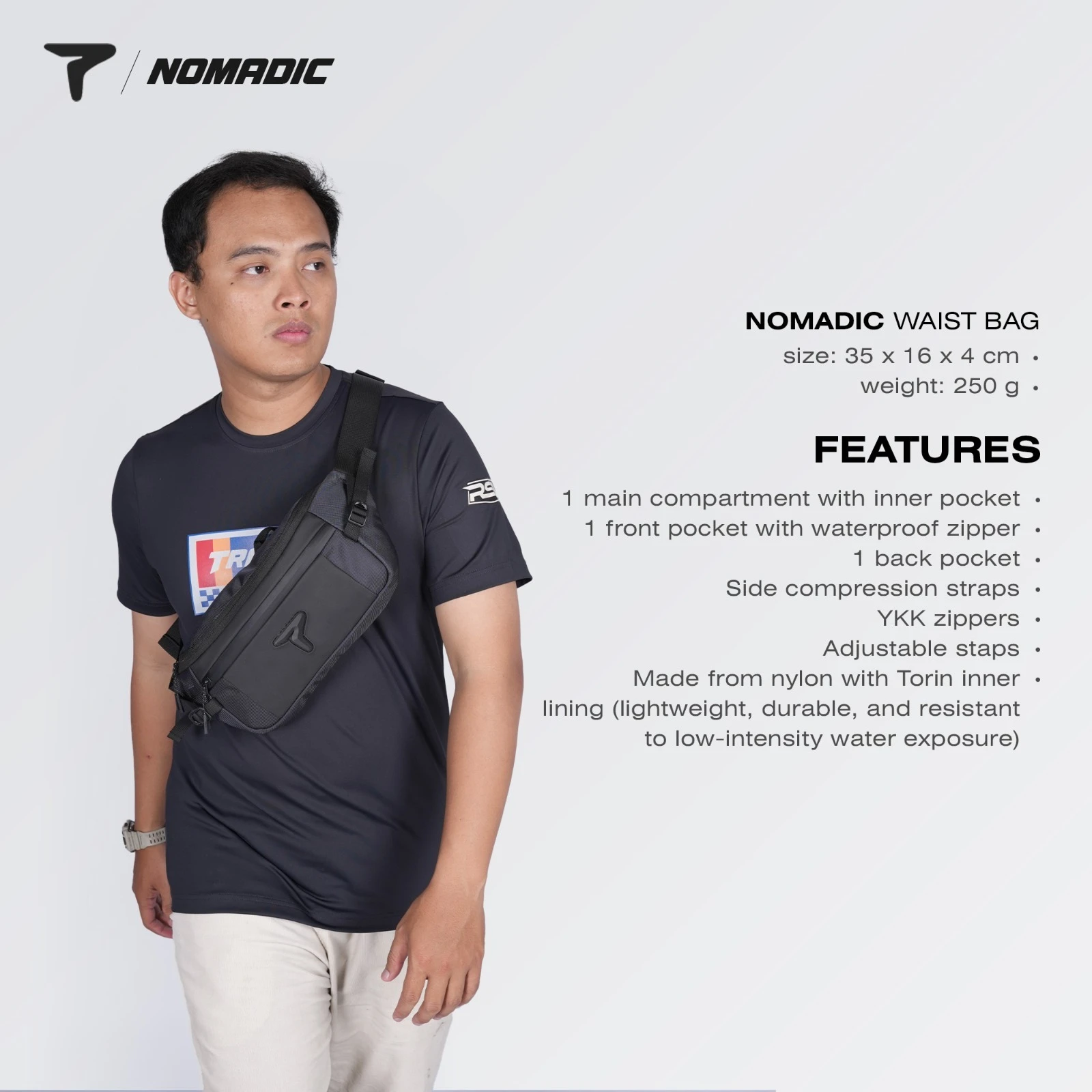 Tas pinggang Nomadic adalah tas pinggang yang ringan, ringkas, dan tahan lama, dirancang untuk menemani kegiatan daily maupun riding Trackeriders. Terbuat dari bahan berkualitas tinggi, tersedia dalam berbagai pilihan warna yang menarik, sehingga trackeriders dapat memilih yang sesuai dengan gaya.